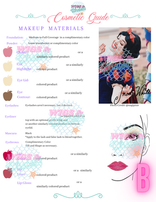 Use these custom character sheets to hone in your makeup skills with color swatches as well as brand recommendations to make you look like the 'Fairest of Them All!'